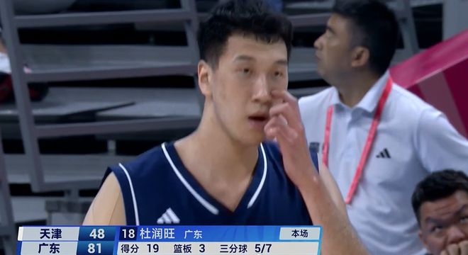 天津队面对广东队的内线攻势,不得不收缩防守,在禁区双人包夹焦泊乔和沈梓捷等内线,于是在外线给了杜润旺很大的进攻空间。杜润旺没有客气,先是两次接到沈梓捷的传球,命中三分球,开了个好头。接下来杜润旺接到徐杰的传球,再次投进三分球,他的投射感觉已经来了。