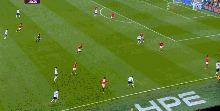 从而在热刺后卫的解围帮助下,形成了后续的连续进攻,姆贝乌莫用头球帮助曼联取得领先: